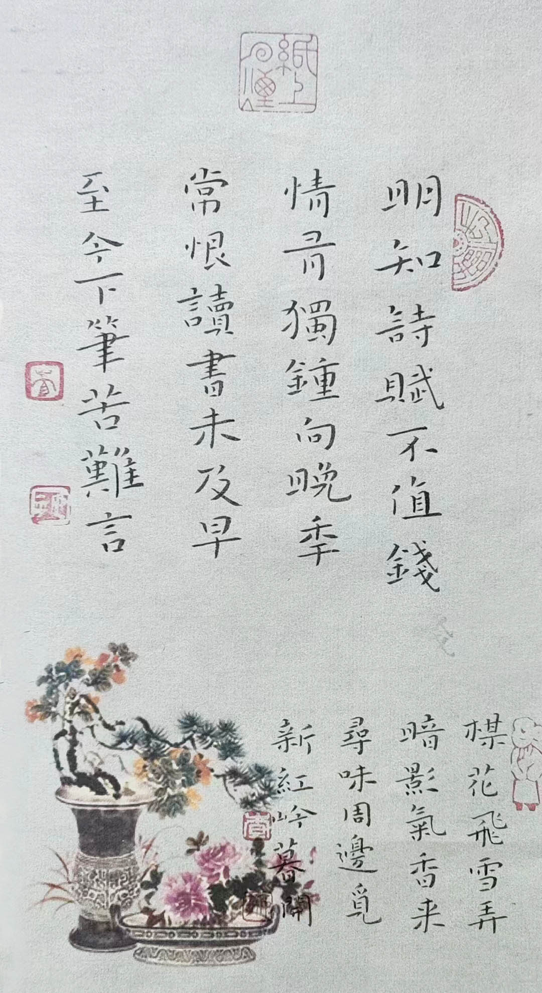 痴于书法,潜心于钟繇、王庞及唐楷。刻苦研习临池不辍,尤工小楷,于稳健端庄之中见流利,灵动飘逸而不失法度。