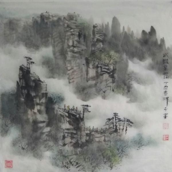 张顺祥作品以描绘湖南张家界武陵源为主,师法自然,力表胸意。