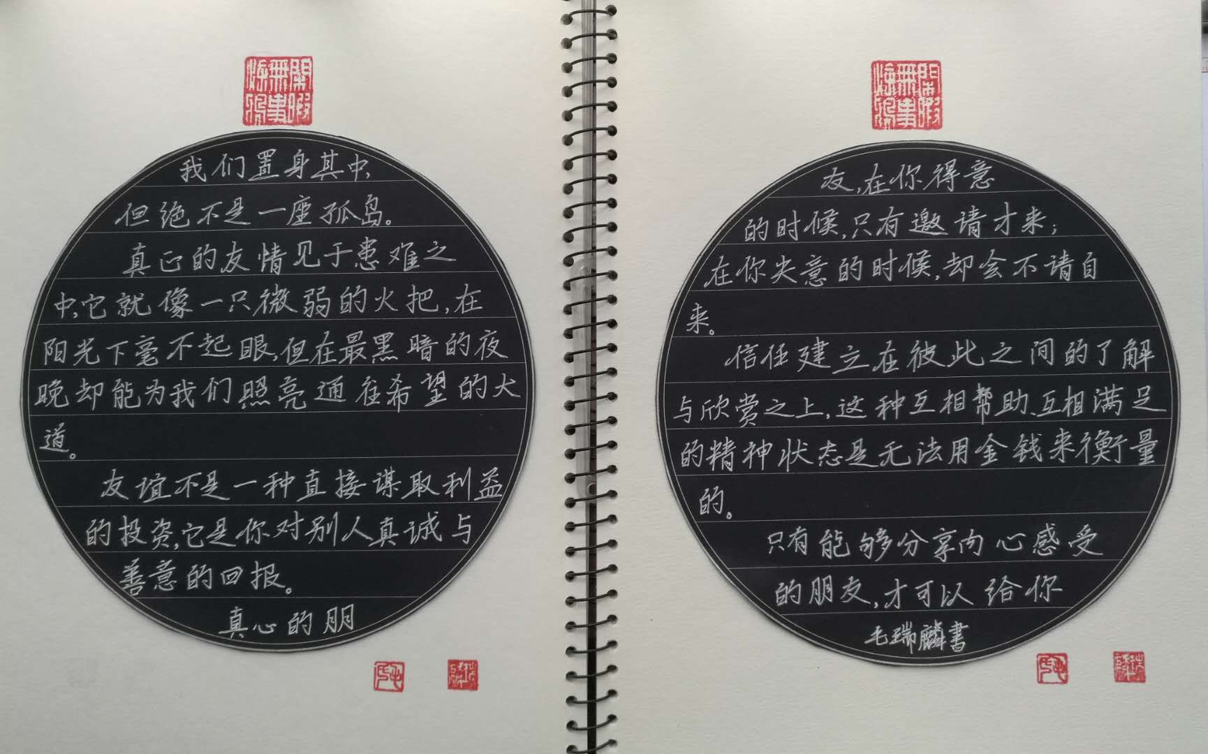 毛瑞麟,男,汉族,重庆大足人,2007年2月出生,现就读于广东省东莞市光正实验学校初中部。目前为中国硬笔书法协会青少年组会员,中国书画联谊会青少年分会会员,自幼受父亲毛登华先生影响而习书法,书法作品曾在镇、市、省、全国获奖30余次,作品也入展于《青少年书法杂志》、《语文报》、《书法报》、《书法报?硬笔书法》举办的大型书法赛事之中。