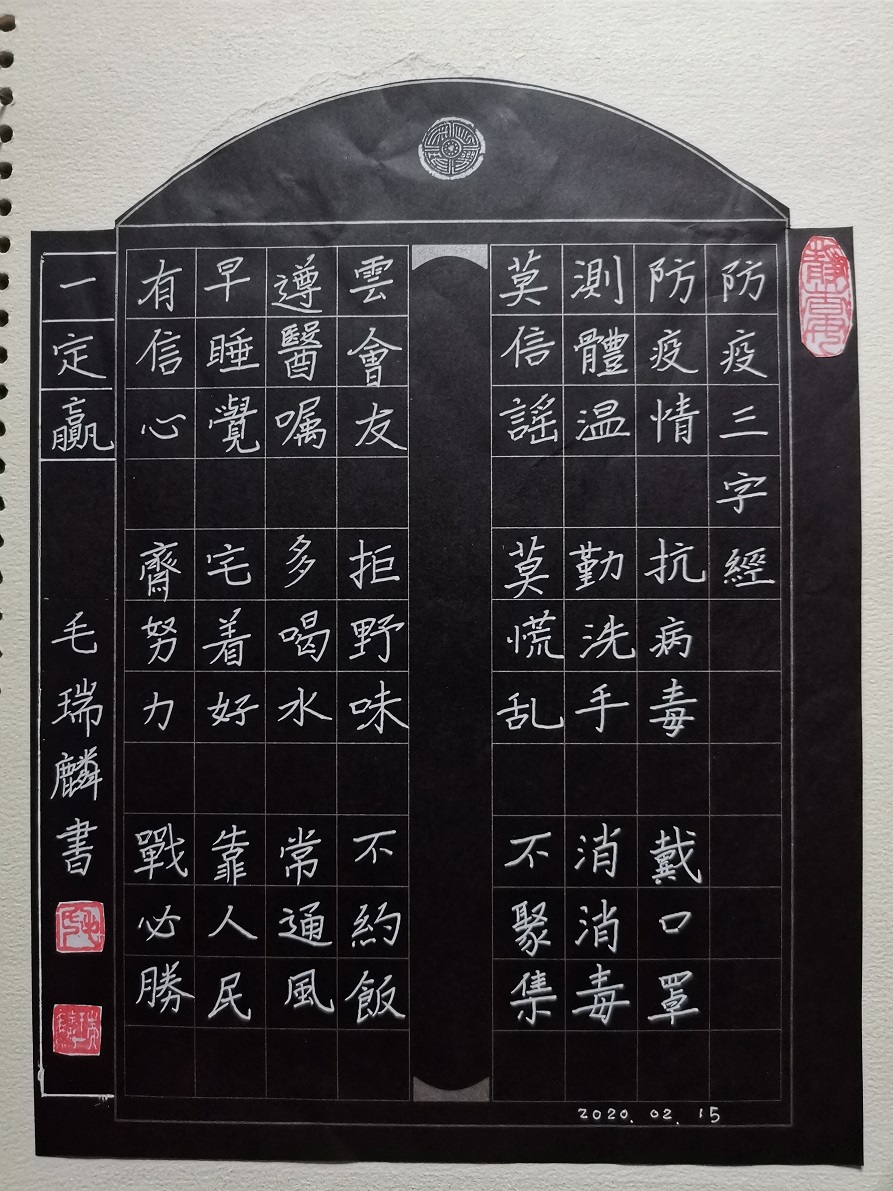 2020年在“全民抗疫杯"第一届全国中小学师生规范汉字书写大赛中荣获中学组硬笔银奖
