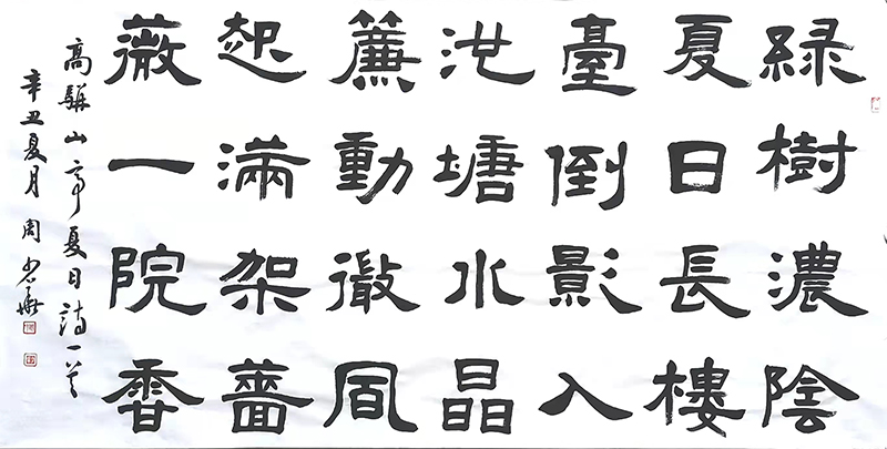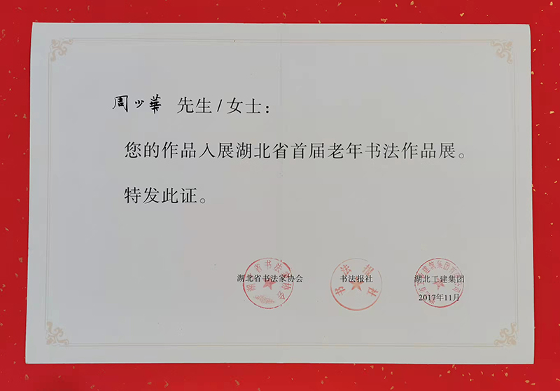 周少华,忘言庐主。湖北省京山市人,1955年重阳日出生于湖北天门市。为湖北省书法家协会会员,湖北省舞台美术家协会会员,中国丝网印刷协会会员,京山市书法家协会副主 席,兼 职书法教师,自幼爱好书法与绘画艺术,在文艺团体担任舞美工作二十余载,尤酷喜书法,砚耕不辍,楷行篆隶草,诸体皆习,收获良多。且热心致力于中国传统文化的普及与推广,多年来一直从事成 人书法免费培训活动,具有很好社会反响,并积极参加与台 湾的文化交流,书作多次在台展出,为推动两岸文化艺术传播和发展而不遗余力……