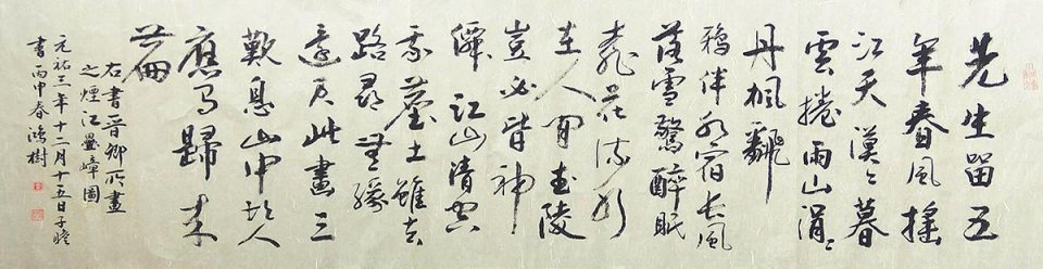 叶鸿树,1953年8月出生,又名叶宏树,斋号“蜗庐”,自诩“蜗庐主人”。湖北省广水市人,中共党员,湖北大学中文系毕业,中国艺术研究院书法家、特邀书画师,中国书法家协会会员,中书协理事会理事,湖北省书法家协会会员,广水市书法家协会副主席兼秘书长。于书法,有着炽烈般酷爱之情,自孩提时代即着意于兹,虽形同涂鸦未尝懈怠。既至成年,砚田笔耕倍勤于儿时,自励纵忙不废日课。于汉魏碑版及二王、北海、颜欧、颠张醉素诸法帖中遍求书法真谛。习书数十载,于上世纪八十年代开始在国内外报刊上发表书法作品,有多幅作品在书法大赛中入展获奖。有的被收入《中国艺术人才书画作品精品集》、《中华翰墨名家作品博览(世纪珍藏版)、《中国当代书画艺术家名典》等.1995 年秋应邀赴京,到中国艺术研究院参加书法艺术研修会,草书作品杜甫诗(赠卫八处士)在人民大会堂参加百日大展并被国家博物馆收藏。个人艺术传记被收于2000年3月香港版《亚洲艺坛名流)辞书。2013年经中国国学研究会评定,被授子“中国国学传承发展特别贡献奖金奖”: 2016 年4月,被中国文化艺术研究会评为“2015年度中国书画十大年度人物”,个人传略和书法代表作品入编中国华艺出版社出版的《中国书画500强(2015)卷)。
