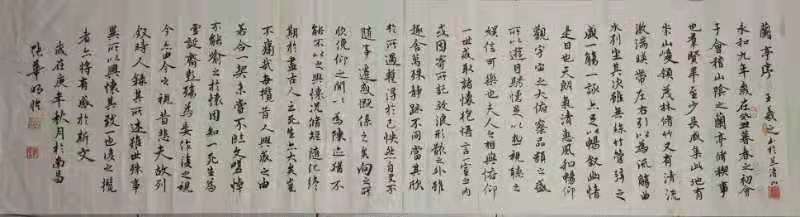 字里透着一种闲来挥笔,驰毫骤墨的率真之感,其中凝重朴厚的意味与飞扬婉转的线条虚实互补,从笔墨中生出了风姿,自然成文。笔墨既不离传统,也不守陈法,取法高远,坦露心性,其中包含着文人的风骨与书卷的逸气。书法艺术成就被诸多电视台、报纸、杂志广为报道。国画“井冈松竹”被《少共国际师》电视剧拍摄组收藏,曾多次受邀余干县微网活动,2019年获全国《华诞杯》五级软笔证书,江西科技学院书法比赛荣誉奖,2020年荣获全国第四届“润德奖”铜奖,2020年第五届全国“润德奖”银奖,《墨香阁》诗词歌赋公众号头条书法特邀插图,洪崖诗书曲艺公众号特邀书法插图。多次受邀公众场合笔会活动,接受多家电视台采访,社会募捐等各种大型活动。