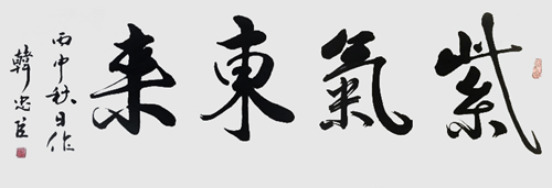 韩忠臣,自幼喜爱书法,毕业于辽宁大学中文系,66年后临习毛主席诗词、题词手笔各大报刊封面书法,75年拜高承鲜、马简超为师,其作品多次在市地展出。同期加入铁岭市书法家协会。82年参加开原市书法家协会成立大会。首批会员。86年参加省内名家冯月庵杨一墨等名人书法家铁岭龙首山笔会。91年成立开原市永和斋书画苑。从事书法教学十多年,学员邓磊获全国少年书法金奖、连续三年获国际银牌奖。为庙宇、商店、饭店写匾多处。2013年至今现任开原市老干部大学书法导师。多次在全国省市地书法展览会上获奖。现为世界华人联合会(总会)中华易学研究会高级风水师、副会长、执行秘书长,易学专家,高级勘舆师,五洲风水研究院副院长、开原分院院长。