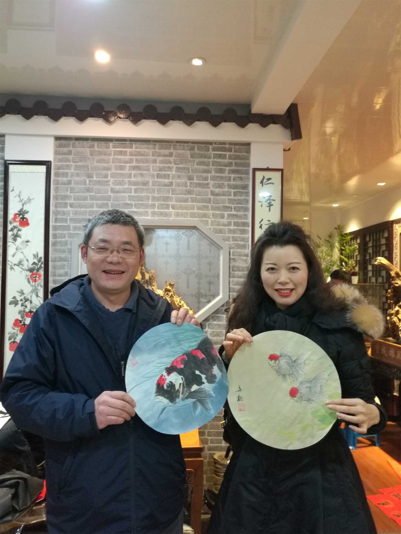 18年1月12日,吴铭在根雕馆与收藏者合影
