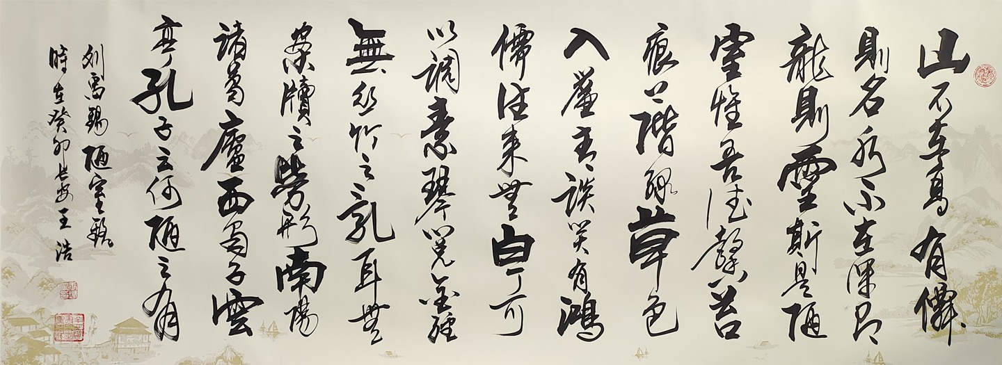 王浩祥,原名王浩,男,陕西西安人,自幼酷爱书法,继承传统,取各家之长,古今结合,大胆创新,已形成自己特有的书法风格。现为中国榜书家协会会员、陕西榜书家协会理事、陕西省书法协会会员、西安于右任书法研究会理事、陕西楷书研究会会长、中书协注册书法教师。作品润格5000元╱平方尺。