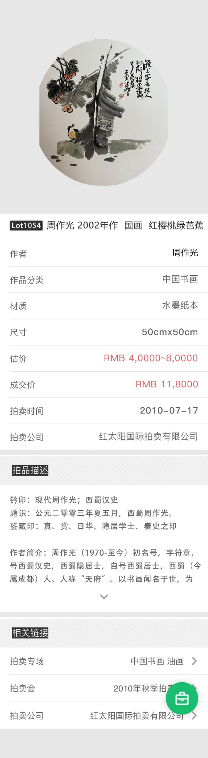 周作光老师作品《在家青山绿水中》于2012年在澳门拍卖行以198000元(人名币)成交