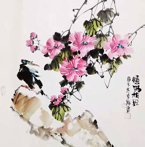 何莉,字垣静,女, 74年生于四川,现居重庆。毕业于西南大学美术学院,从事艺术设计、绘画工作。2009年开始跟随著 名花鸟画家方彪先生学习,艺业精进。现为中国工艺美术学会会员、重庆两江新区美术家协会会员。